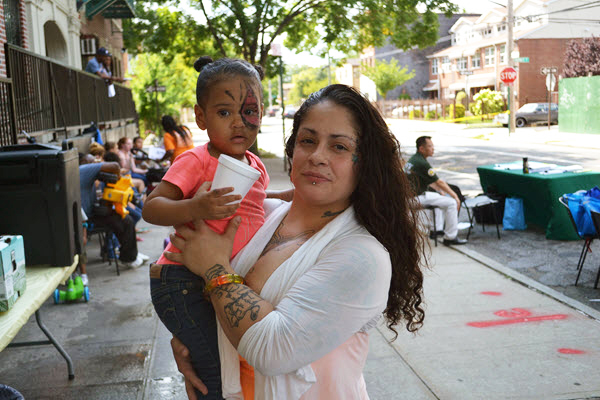 On a warm Friday afternoon, a quiet street in East New York resounded to the compelling beat of the top 40 hits. A couple of enthusiastic DJs were setting the mood for a block party that was taking place in front of the S:US Rose McCarthy Family Shelter. Residents of the shelter, each of whom has a history of homelessness, were grateful to receive this summer treat as children and parents alike enjoyed fun activities like face-painting, games, eating cheeseburgers and trying out sidewalk calligraphy. Ten community organizations (see list below) set up tables where they offered residents access to local resources.