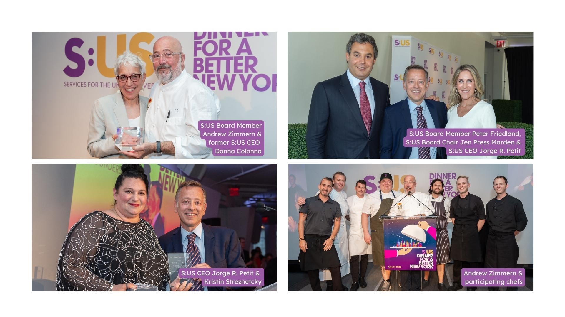In a heartfelt speech, Zimmern recalled his own past struggles. “Many of you know that at one point in my life I was homeless and struggled with addiction. My lowest point came when I tried to end my own life. The truth is, the main difference between me and many of my fellow New Yorkers who are currently experiencing challenges like homelessness and addiction is that, when things were the hardest and I thought I was alone, I found the support of experts and people who treated me with dignity and respect. That is exactly what S:US does for tens of thousands of people every year. I tell my story to demonstrate how resilient human beings can be, and that even the most difficult circumstances can be overcome with the right supports.”
