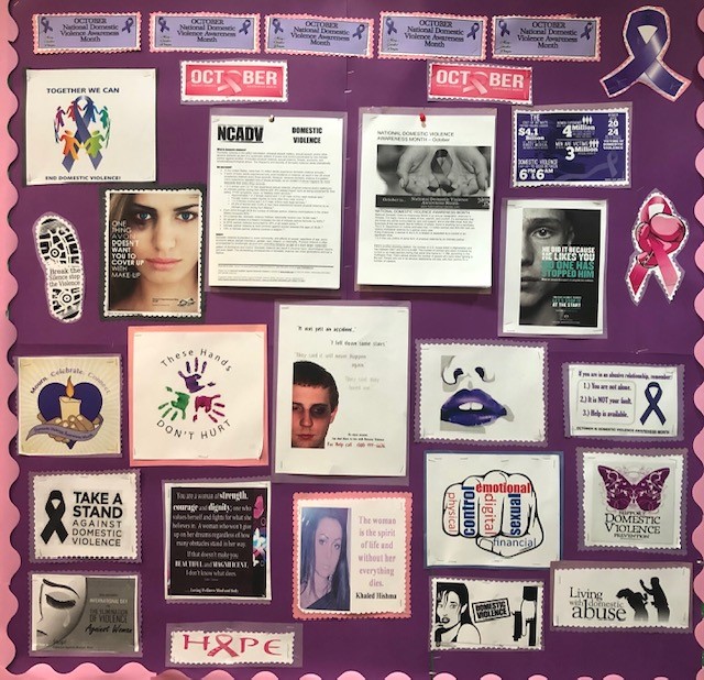 This year in honor of Domestic Violence Awareness Month, we created a poster board with two statements that we asked survivors at each of our domestic violence shelters to complete in their own words. The two statements were: “Breaking the cycle of domestic violence means/looks like…” and “I challenge domestic violence because…” The primary focus of creating these poster boards and engaging our survivors in this activity was to help them to envision a new life for themselves and their children. While there is fear in starting over or of the unknown, we wanted to help our survivors to write their own narrative of what this change would mean for them and give them a chance to dream of a better life for themselves and their children. Displaying these poster boards with their personalized and empowering statements in our shelters will help to serve as reminders to them as well as others on how important this journey is in changing their lives – and to encourage them to keep going.