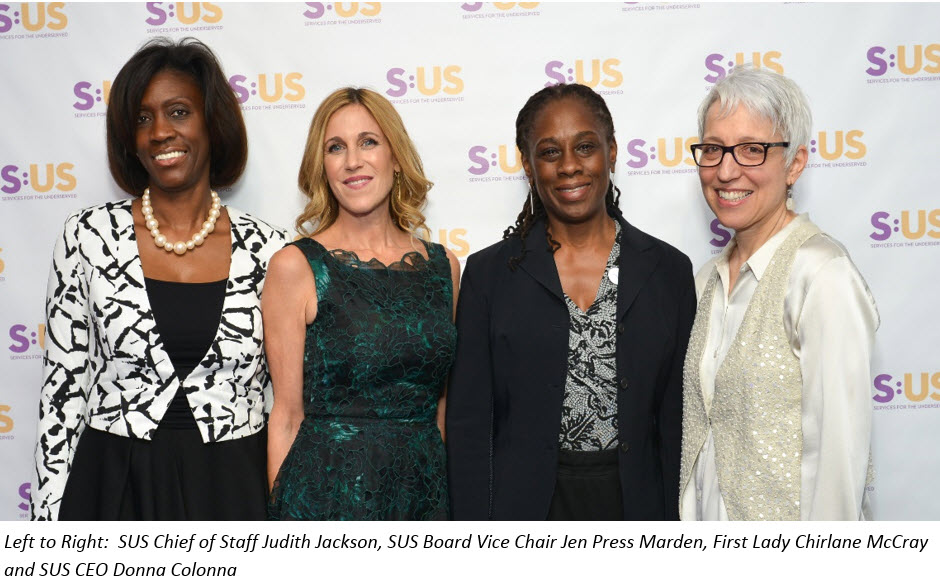 “Engaging!” “Exciting!” “Exactly where I wanted to be!” This was the sentiment expressed by those in attendance at the Evening of Opportunity hosted by Services for the UnderServed (S:US). First Lady Chirlane McCray was among the nearly 300 guests from the civic, business and philanthropic communities who filled the historic Weylin B. Seymour’s in Williamsburg, Brooklyn. The evening featured opportunities to support S:US’ services with a special focus on services for individuals with autism, the homeless and veterans.