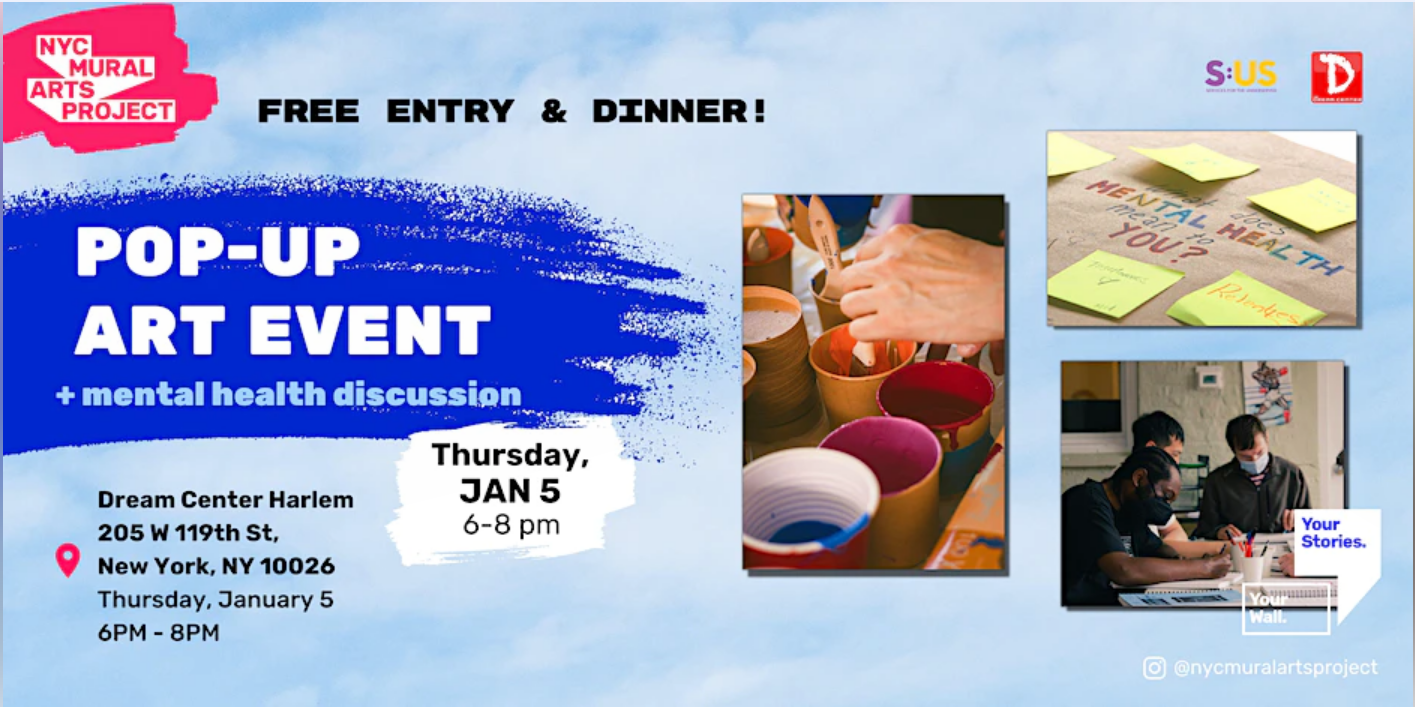 Join us on Thursday, January 5, 2023, 6-8PM for an evening of community-building and rethinking mental health, with art activities and free dinner. Bring friends and family of all ages. Everyone is welcome. Save your spot here!