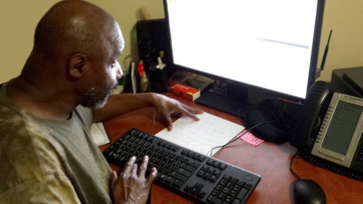 [Pictured: Lonzo is working on sending an e-mail to his behavior intervention specialist to ask when she will be visiting him next.]