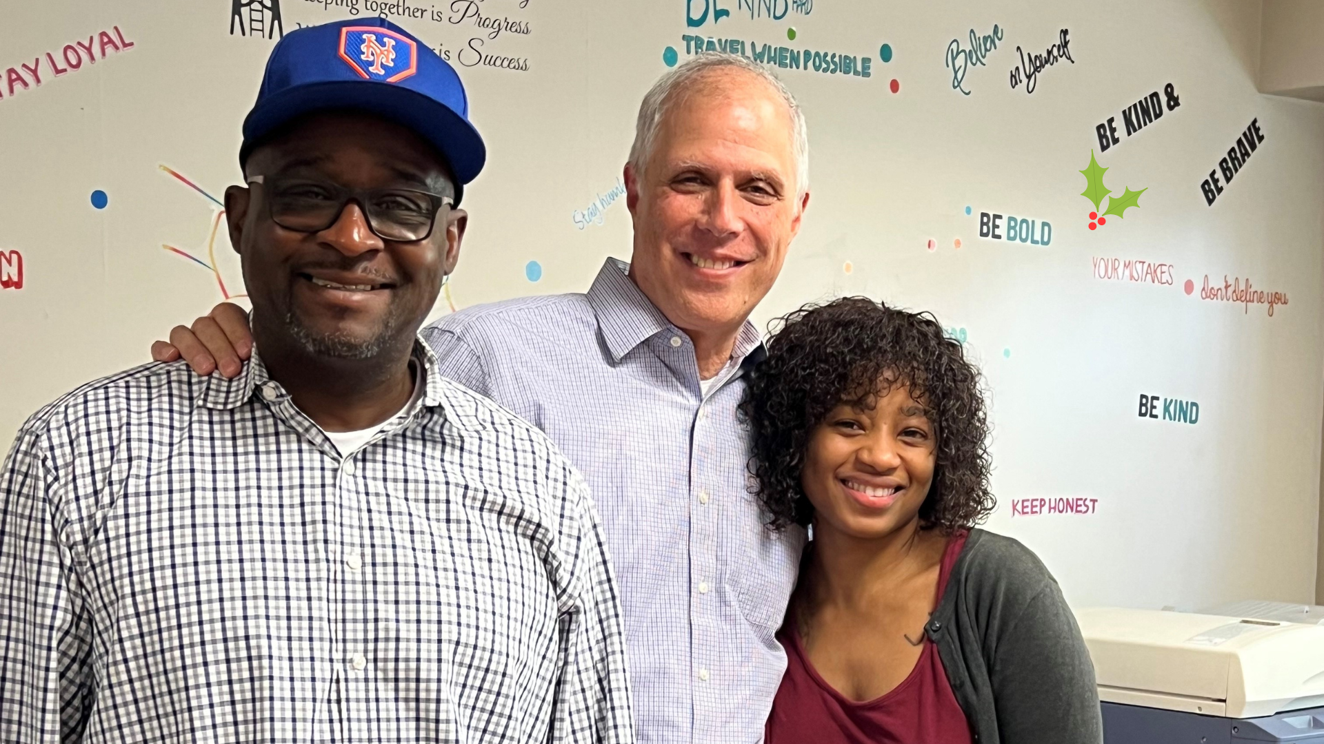 Photo caption: Perry Perlmutter (middle) with supportive housing staff.