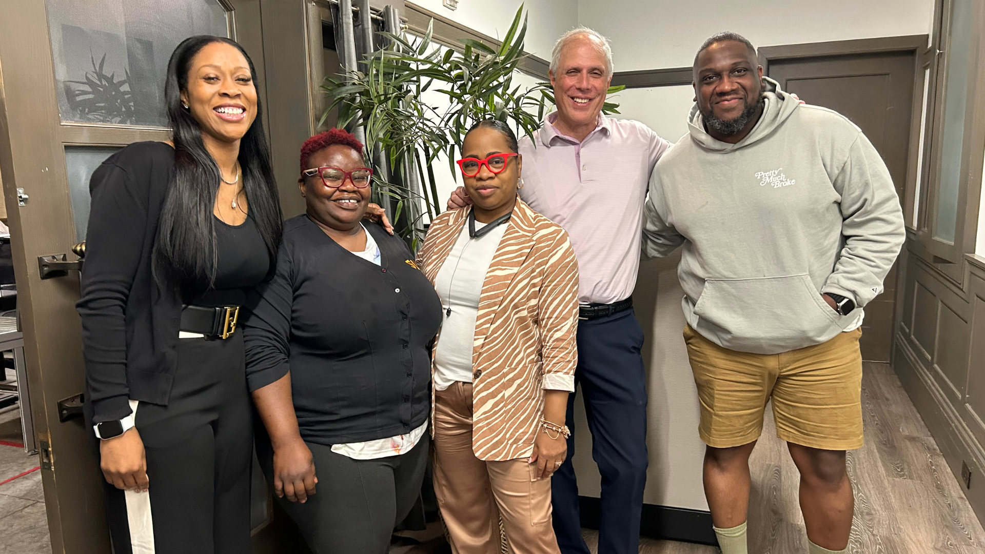 Photo caption: Perry Perlmutter (second from right) with Homeless Services staff.