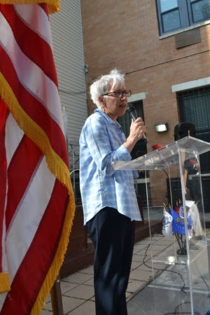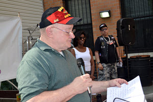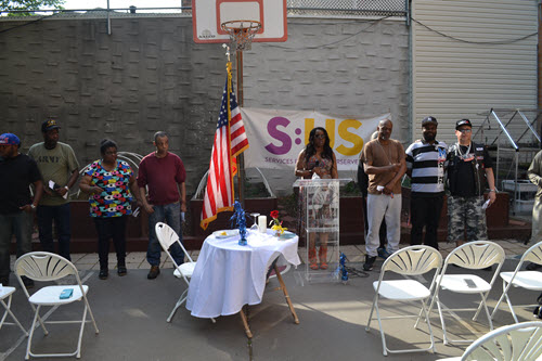 The Memorial Day service began with S:US CEO Donna Colonna (pictured right) addressing the assembly, “I want to thank the tenants of Knickerbocker for hosting Memorial Day honoring the men and women who have died for our freedom in our country. I also want to thank all the veterans that are here for their service. Too often we see Memorial Day as just a holiday, but not at S:US. Not only is the work that we do with veterans important, but we want to make sure we never forget those who fought for us, and we want to value the fact that we have that freedom because there are men and women who are willing to put themselves in harm’s way for us.”