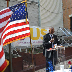 Joshua Alcide, Housing Service Coordinator for our Supportive Services for Veteran Families program, led in the singing of the national anthem which was immediately followed by US Army Veteran Sergeant Stephan Hall (pictured right) giving the benediction. Stephan recently became a chaplain and is S:US’ Veterans Outreach Coordinator.