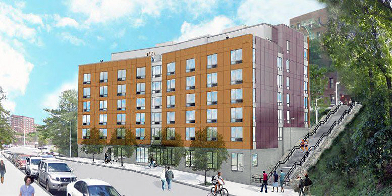 The South Bronx continues to boom with new affordable and supportive housing projects. Non-profit Services for the Underserved hopes to build a seven-story apartment building at 1434 Undercliff Avenue, in the Highbridge section of the Bronx. The development would have 75 apartments, which will break down into 65 studios and nine two-bedrooms, plus the super’s apartment. They’ll be spread across 49,143 square feet, for average, 655-square-foot units. Sixty percent of the apartments will be supportive housing, but the type of tenants who live there depends on the federal and state grants S:US receives during construction. The supportive units could house people struggling with mental health issues, drug addiction, or HIV/AIDS. The remaining 40 percent will rent to tenants who make no more than 60 percent of the Area Median Income, or $43,500 for a two-person family. Part of the development will be reserved for veterans, because the organization has already nailed down that piece of the funding. Offices for supportive services, like a social worker, case manager, and job counselor, would occupy most of the first floor. There would be nine units on the second floor, followed by 16 units each on the third through sixth floors. The seventh floor would host two apartments, a computer room, a lounge with a small kitchen, and a roof deck with a garden. S:US also hopes to put solar panels on the roof. No parking is included, because the city’s new zoning changes waived parking for affordable and supportive projects within a mile of the subway. James McCullar Architecture will be responsible for the design. McCullar also worked on S:US’s last project, a seven-story mix of supportive and affordable housing on Third Avenue in Morrisania. The 51-unit development was built using modular construction, with apartments assembled by Capsys at the Brooklyn Navy Yard. Capsys is closing up shop this month after 20 years at the Navy Yard, and 1434 Undercliff Avenue will be built with typical block-and-plank construction. Like much of the western Bronx, the development site sits on a rocky, steep slope. Since digging into the cliff is difficult and expensive, the building won’t have a basement. However, the back of the structure will sit on the top of the cliff, several feet above the street level entrance to the building. Construction is scheduled to begin in June and finish sometime in 2018.