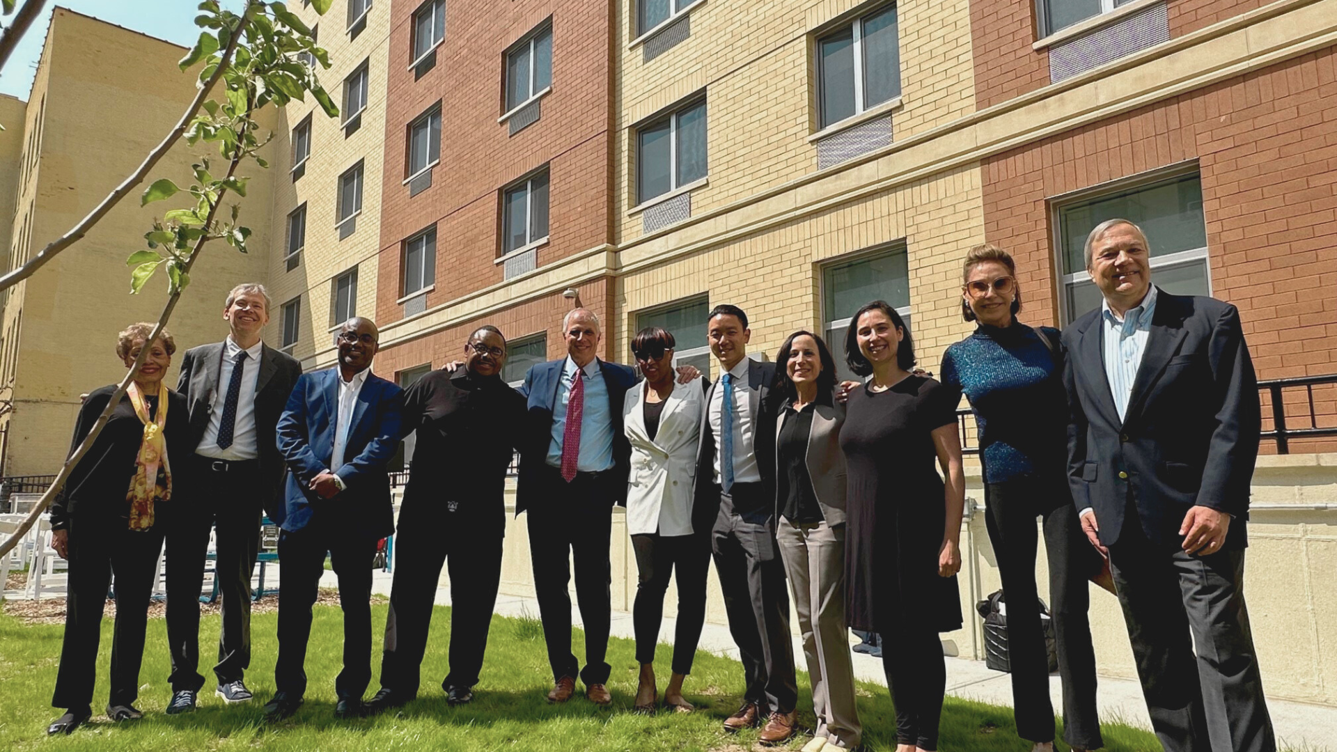Photo caption: S:US Board Member Carolyn Powell, S:US SVP Real Estate Development Arlo Chase, CB-Emmanuel Managing Partner Chris Bramwell, Mount Ararat Church Rev. Steven Carter, S:US Interim President & CEO Perry Perlmutter, Senator Roxanne Persaud’s Chief of Staff Tanequa Strong, Richman Housing Resources AVP Sigmund Ting, Chase Executive Director Jane Silverman, HPD Asst. Commissioner for Special Needs Housing Emily Lehman, S:US Board Vice Chair Gail McCallion, and S:US Board Chair John McKesson.