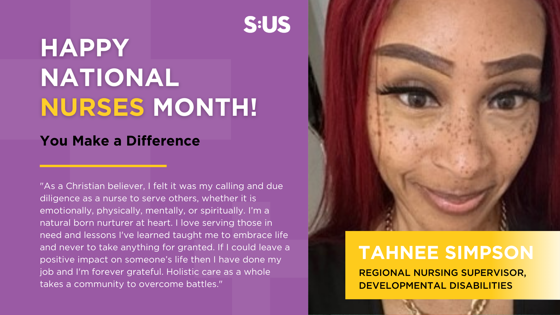 Nurses are trusted providers of quality healthcare, advocates for individuals and families, and influencers of healthcare policy. We will be honoring S:US nurses throughout the month by sharing their profiles.