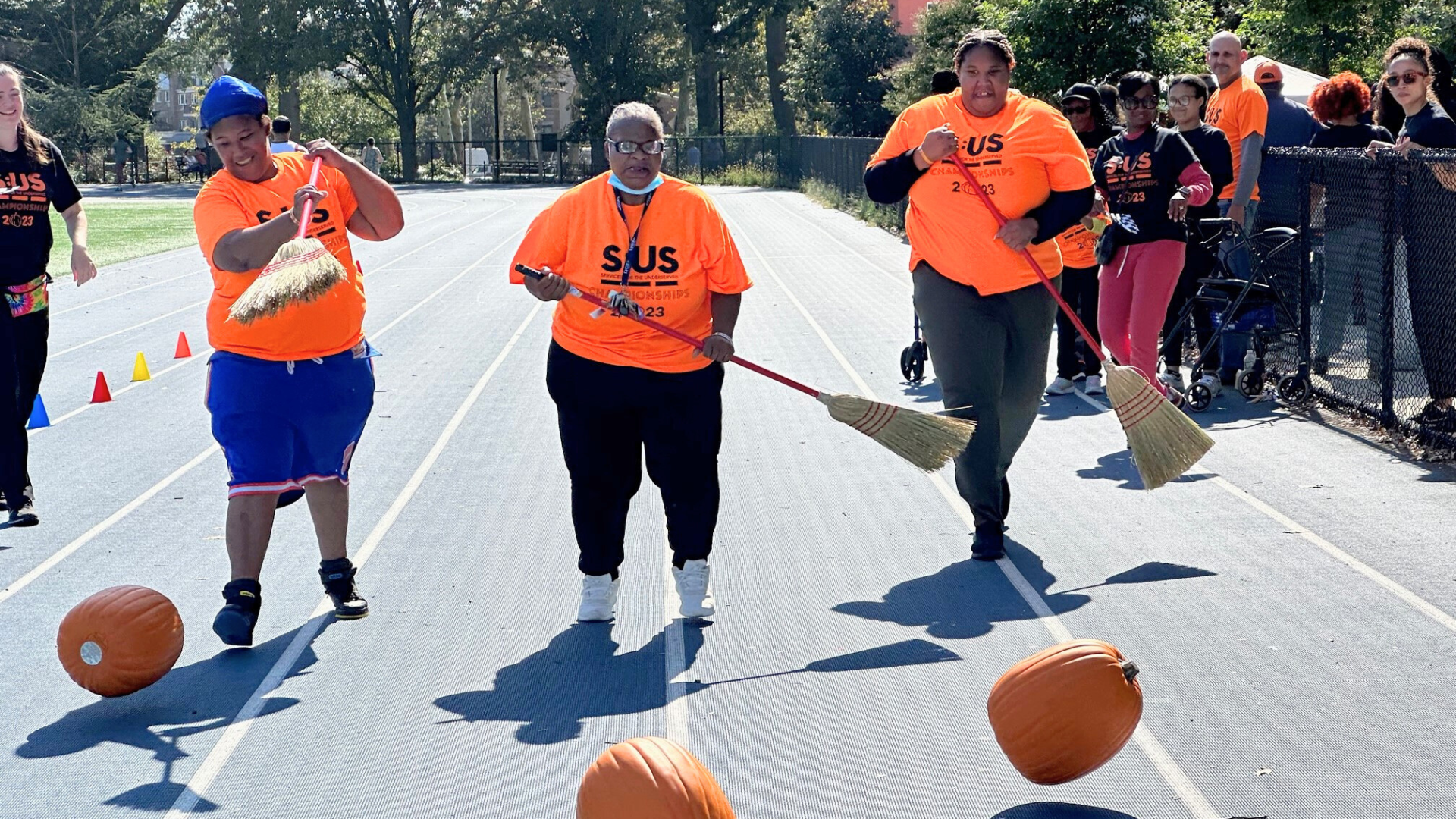 Photo: People served by S:US compete in a pumpkin race.