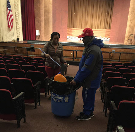 When you hear the word “opera” you probably think of a beautifully-lit stage, booming voices and larger than life personalities. Chances are you don’t think of the quiet yet enthusiastic cleaning crew that keep the place clean and appealing. Jesse Willis (pictured with S:US Day Habilitation Specialist Judith Gordon-Campbell) is one of the individuals who participate in our 5th Avenue Day Hab. Program and recently began volunteering on weekends at the Opera House in Brooklyn. True, Jesse and his fellow volunteers aren’t wearing period costumes and singing arias but they are doing something equally important: cleaning, sweeping, picking up litter and providing a general cleanup to prepare the opera house for its next performance. While they perform these useful services each individual is also developing valuable skills they can use in competitive employment. Individuals have shared that they like volunteering at the opera house because they get to interact with opera attendees and enjoy magnificent singing and live orchestral music. The Regina Opera House has expressed immense gratitude for these volunteers and invited them to attend performances and enjoy free refreshments during the intermissions. S:US is proud of our individuals’ commitment and diligence in their volunteering efforts, and their engagement in culture within their community!