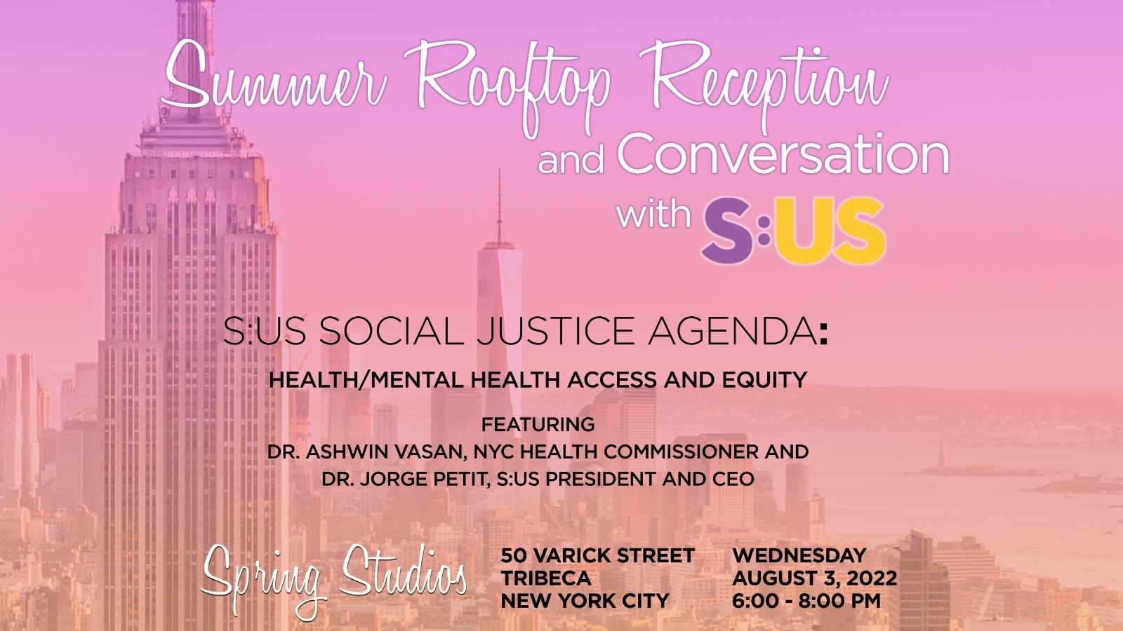 Featuring a stimulating conversation with Dr. Ashwin Vasan, Commissioner of the New York City Department of Health and Mental Hygiene, and S:US’ President and CEO, Dr. Jorge R. Petit as they discuss health and mental health access and equity and opportunities for city-wide collaborations.